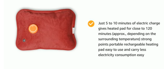 Electric Heating Pad with pocket, Rechargeable, 120 Minutes Heat