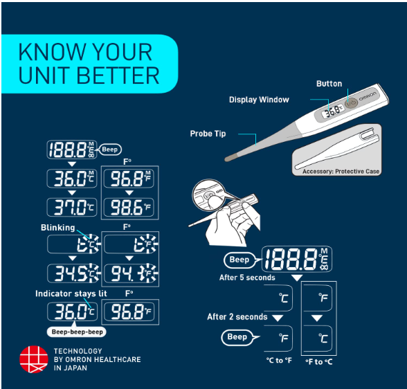 - For oral, rectal and underarm temperature measurement